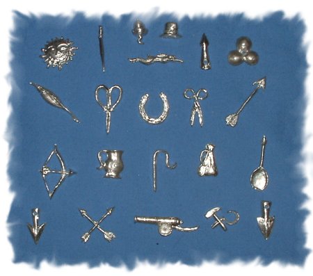 tankards, rondells, brooms, bows, arrows,